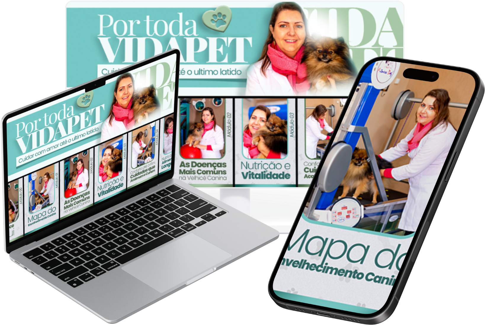 No Por Toda a Vida PET, você aprende a reconhecer rapidamente o que é normal, o que é urgente, como aliviar dores, como adaptar rotinas e como cuidar da saúde física, emocional e comportamental do seu pet.
